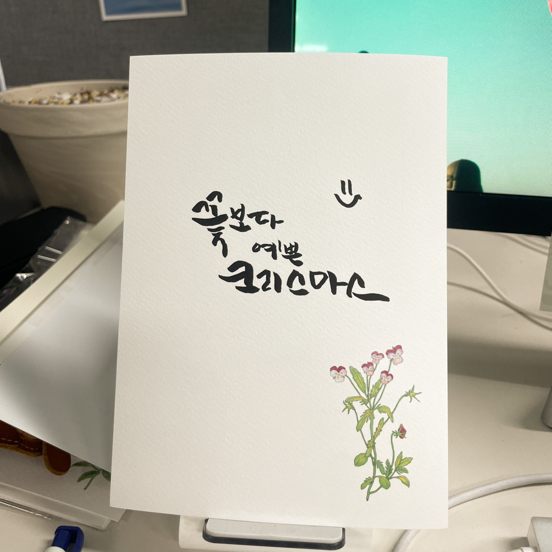 크리스마스 전날이라 그런지 직원이 별로 없어 조용한 와중에 한번 써 봤다. 날이 날이라 배경지 그림이 산타나 눈사람이면 더 좋았을텐데, 아쉽게도 꽃이라 문구에도 '꽃'을 넣어 적었다.