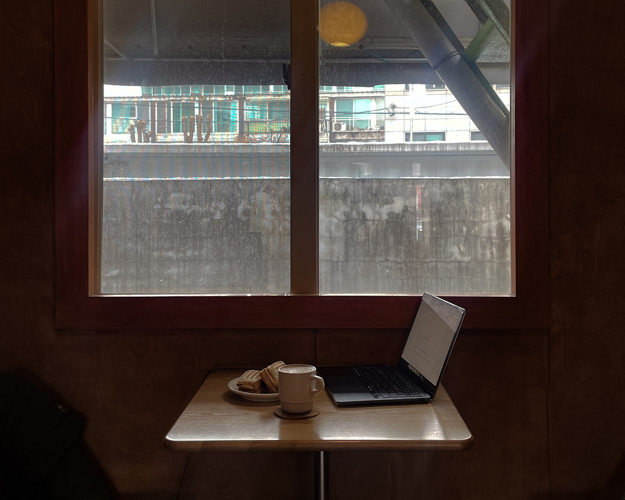 오랜만에 찾았지만 핫샌드위치와 라테는 여전했다. 잠시 그 맛을 음미하다가 글을 썼다. 주말 새 다녀온 민화 전시회를 회고했다. 예술의 여운을 느끼기에도, 주로 자연의 빛이 은근히 밝힌 이런 차분한 공간이 좋다.