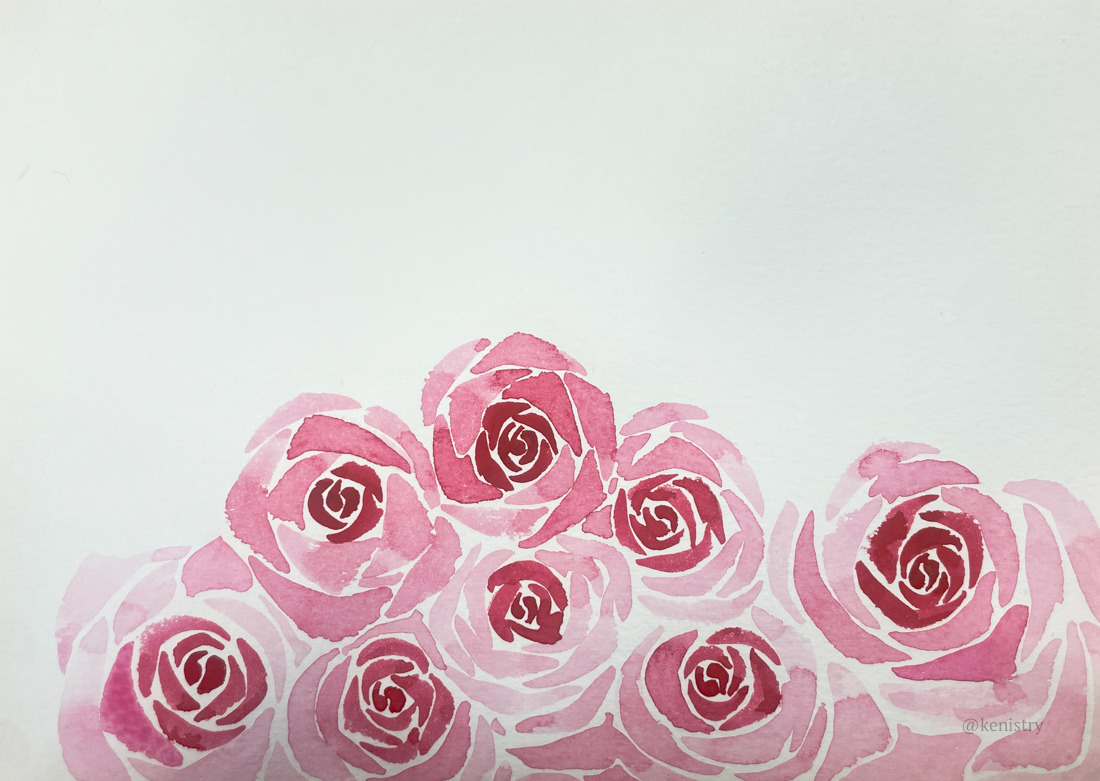 이번 연습 주제는 '스케치 없이 그리는 장미꽃'이다. 단색을 이용해서, 오직 붓의 터치와 농도의 조절만으로 꽃잎으로 표현한다. 단순화한 그림이다. 포스터 배경지로 쓰이면 좋다. 먼저 이야기한 대로, 이 그림은 사실 실패에 가깝다.