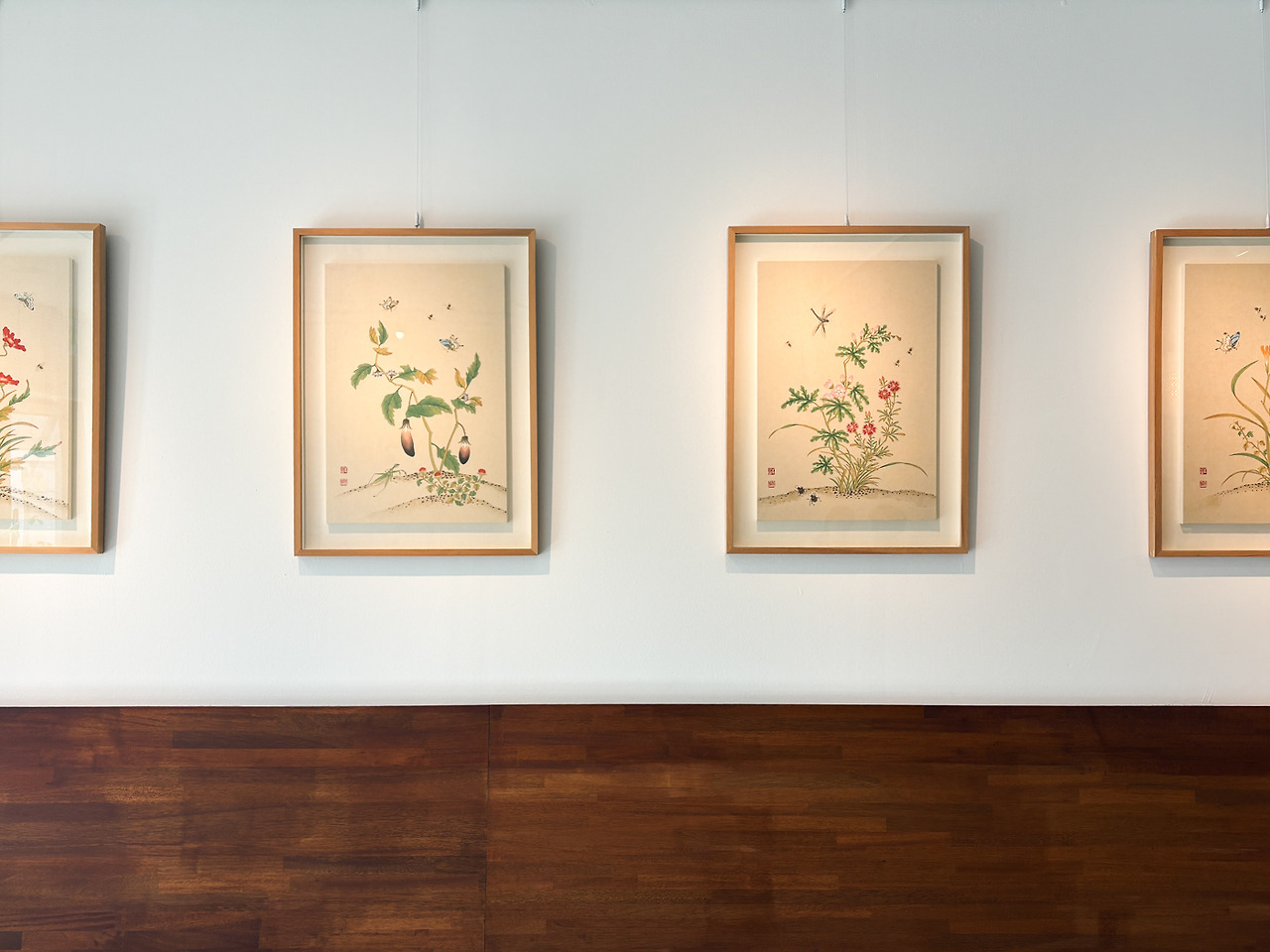 이 공간이 특별한 이유는 벽면을 채운 ‘민화’가 아닐까 한다. 모던한 프레임에 담긴 화조도는 전통 회화가 현대적 미감 속에서도 얼마나 정제된 방식으로 조화를 이룰 수 있는지를 분명하게 보여준다. 동일한 전통 요소라도 자개나 서예처럼 강한 장식성이나 에너지가 돋보이는 소재는 오히려 공간의 미니멀한 흐름과 충돌할 가능성이 있었을 것이나, 웜톤의 흰 배경 위에 얹힌 부드러운 선과 색채가 은은한 민화는 과하지 않은 존재감으로 공간의 질감을 이룬다.