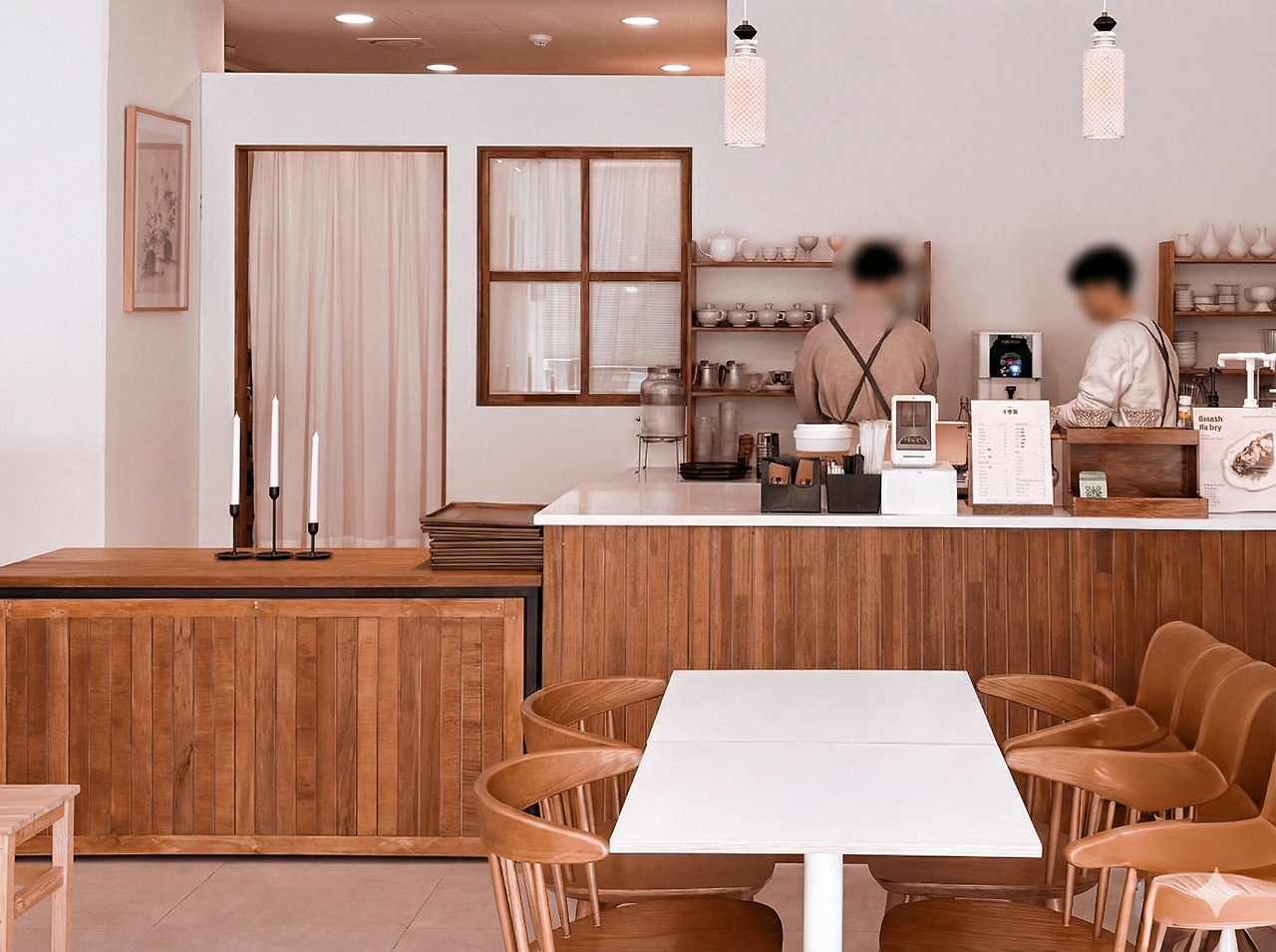 모던한 카페 인테리어에 자주 적용되는 우드와 화이트의 조화는 교과서적이다. 많이 쓰이는 이유는, 우리 시선에 가장 편안하다고 느끼기 때문이 아닐까. 화이트는 빛을 넉넉히 품어 공간을 열어둔다. 어떤 분위기에도 과하게 개입하지 않고, 차분한 배경이 되어준다. 그리고 우드는, 자연에서 온 패턴과 온도를 지닌 재료라서, 눈길이 닿는 순간부터 따뜻함이 느껴진다. 두 요소는 서로를 밀어내지 않으면서도 자신의 자리를 잃지 않는 방식으로 균형을 이룬다. 낯선 방문도 편안하게 느껴지기에, 카페 분위기에 자주 등장한다.
