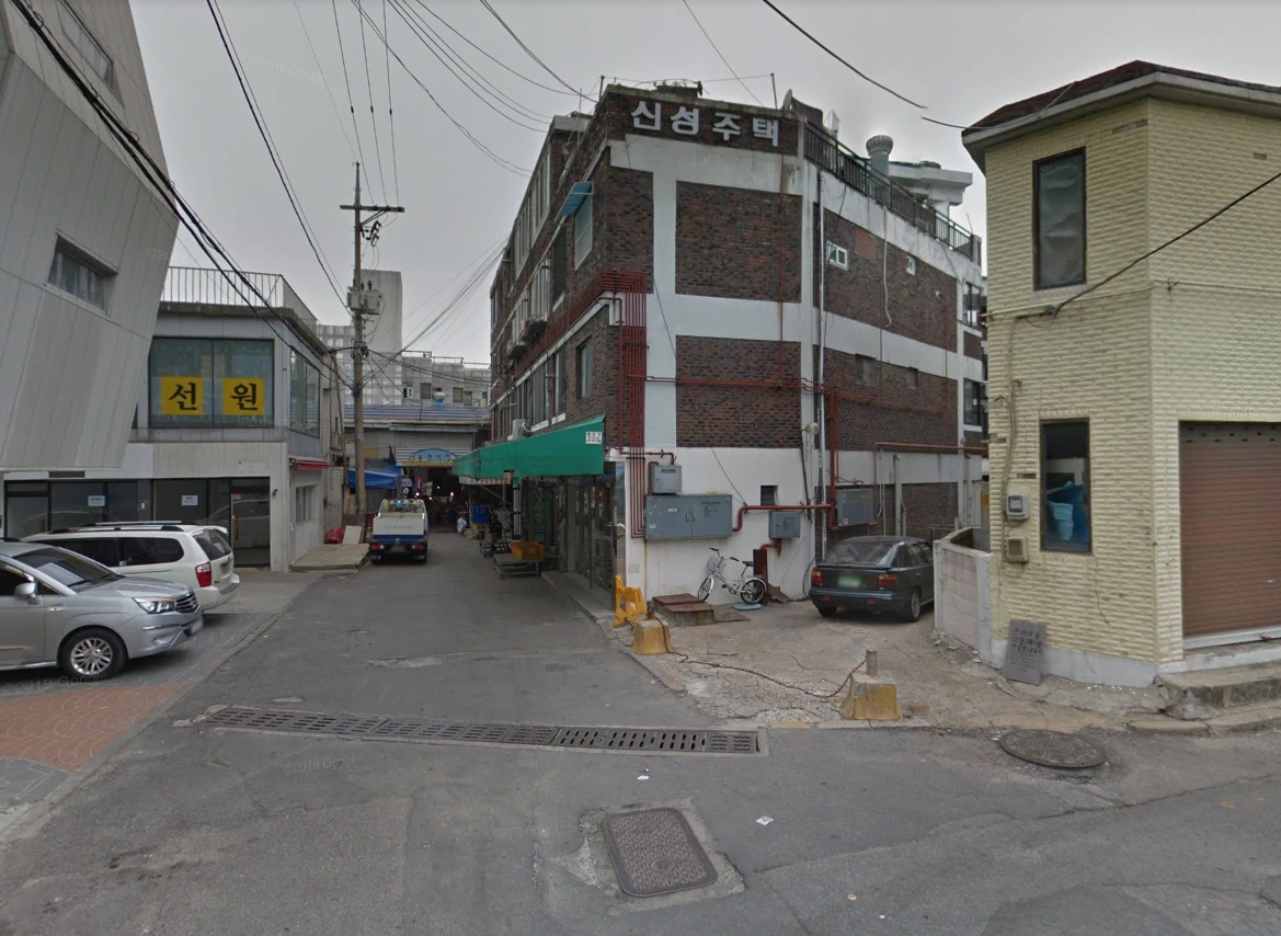 시장과 인접해 있어 1층에는 다양한 점포들이 자리 잡고 있는, 굳이 표현하자면 큰 주상복합빌라.