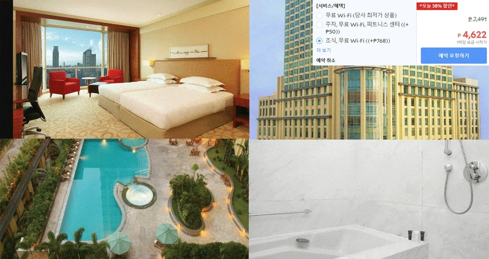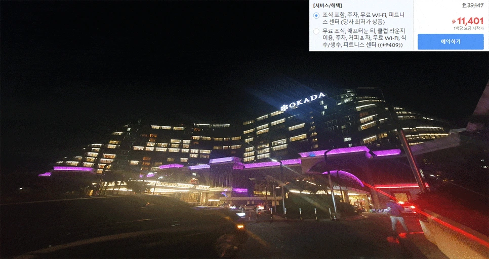조식 포함한 1박 가격 차이 11,401 - 4,622 = 6,799 PHP => 약 16만 원