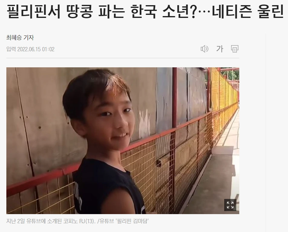 출처 : 조선일보 최혜승 기자 'PHILIPPINES서 땅콩 파는 한국 소년?… 네티즌 울린 코피노 이야기'