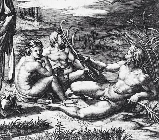 마네는 그런 미화에는 전혀 소질이 없었다. 그는 사실 상상력이 뛰어난 화가가 아니었다. 마네는 고전회화와 거장들의 작품을 소개하는 판화를 즐겨 차용했고 때로는 당대의 화가들의 그림을 응용하기도 했다. <풀밭 위의 점심> 역시 라파엘로의 작품[그림 3]을 모방하여 그린 것이다. 사람들은 이것을 보고 티치아노의 <전원의 합주>[그림 4]를 떠올리기도 했다. 마네는 이렇게 익숙한 소재에서 신화를 걷어내고 쿠르베의 사실주의를 더해 전혀 다른 그림을 만들어 버렸다. 목동은 브르주아 신사로, 여신은 평범한 여인으로 바꿔버린 것이다.