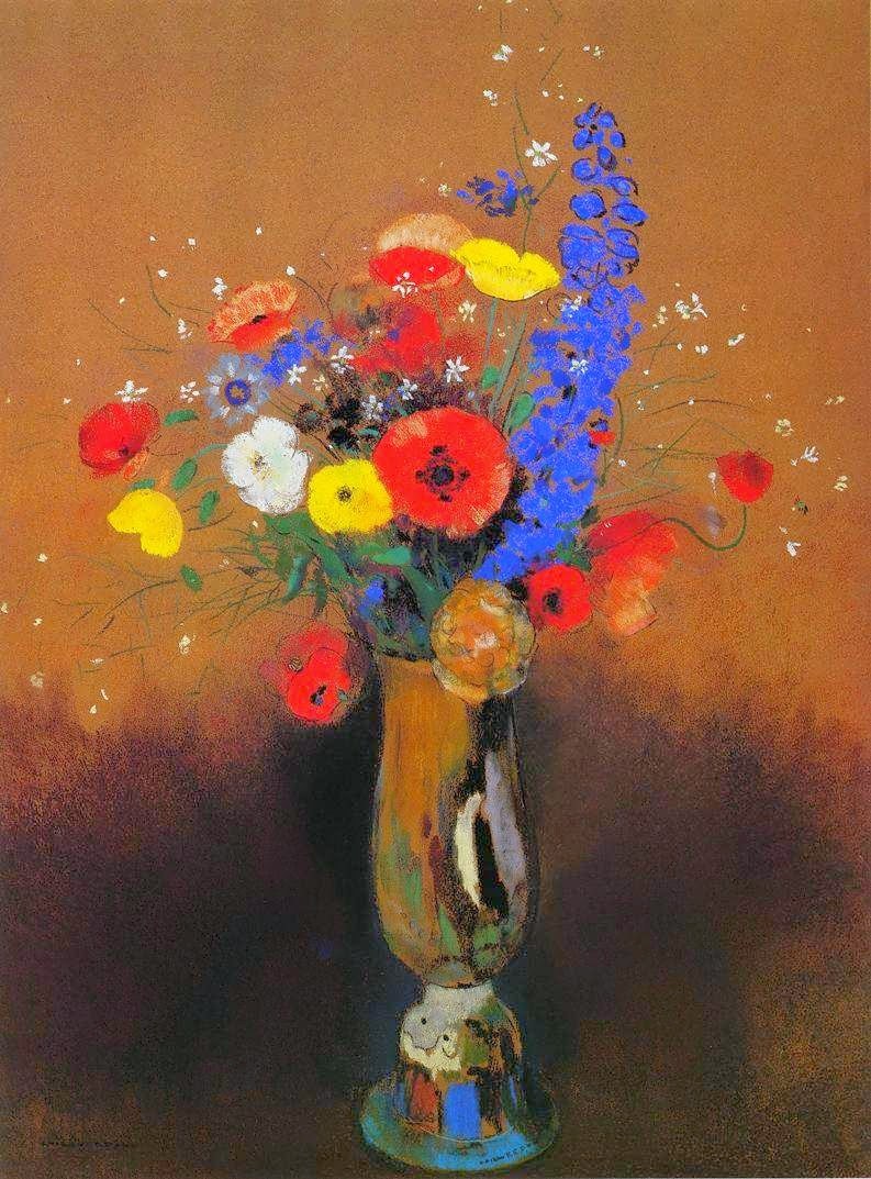 <목이 긴 화병 속 들꽃다발>[그림 4]은 자세한 관찰을 통해 그려졌다. 눈에 보이는 사물들은 왜곡되지 않았다. 그럼에도 이 세상 것이 아닌 듯 환상적으로 느껴진다. 강렬한 색채 대비와 가느다란 선들의 율동감, 미묘한 번짐 효과까지 매우 치밀하게 구성되었기 때문이다. 사물인 듯, 사물이 아닌, 사물과 같은 환상! 눈에 보이는 분명한 화병은 그렇게 한 편의 꿈이 되었다.