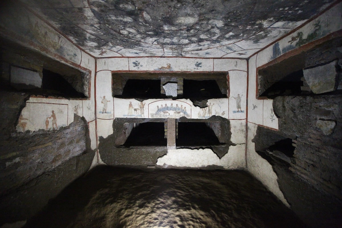지하 세계엔 유족들이 죽은 이들을 애도하며 제사를 지내는 넓은 홀이 있었다. 초기 기독교인들의 예배가 이곳에서 이루어졌다. 기독교인들은 박해자들의 눈을 피해 지하 묘소로 들어갔고, 예수의 죽음과 부활을 기억하는 예식을 올린 뒤 지상으로 올라왔다.