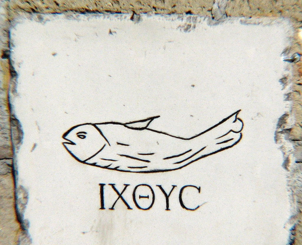 헌대 이와 달리 무덤에 그려진 물고기 도상은 빵 없이 홀로 그려졌다.[그림 6] 물고기란 뜻의 그리스어 ‘Ichthys’와 함께 그려진 것이 많았다. 때론 ‘Ichthys’라는 글자를 가지고 물고기를 표현하기도 했다. Ichthys는 “예수, 그리스도, 신의 아들, 구원자(Ίησοῦς Χριστός, Θεοῦ Υἱός, Σωτήρ)”의 첫머리를 따온 말이었다.