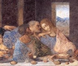 기를란다요의 작품[그림 4]은 전통적인 방식으로 그려진 매우 경건한 만찬 장면을 보여준다. 관습적으로 배신자 유다는 홀로 떨어져 식탁 맞은편에 앉아 있고, 요한은 예수의 품에 안겨있었다. 레오나르도는 이 두 가지 규칙을 모두 깨버렸다.
