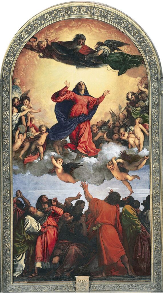 그러나 얼마 지나지 않아 티치아노는 자신의 천재성을 유감없이 발휘하기 시작했다. 1510년 조르조네가 서른이라는 젊은 나이에 페스트로 죽고 1516년 벨리니마저 사망하자 티치아노는 20대의 젊은 나이에 베네치아에서 독보적인 화가가 되었다. <성모 승천>[그림2]은 이 젊은 화가가 그런 명성을 얻기에 충분한 실력을 갖추고 있었다는 것을 보여준다.
