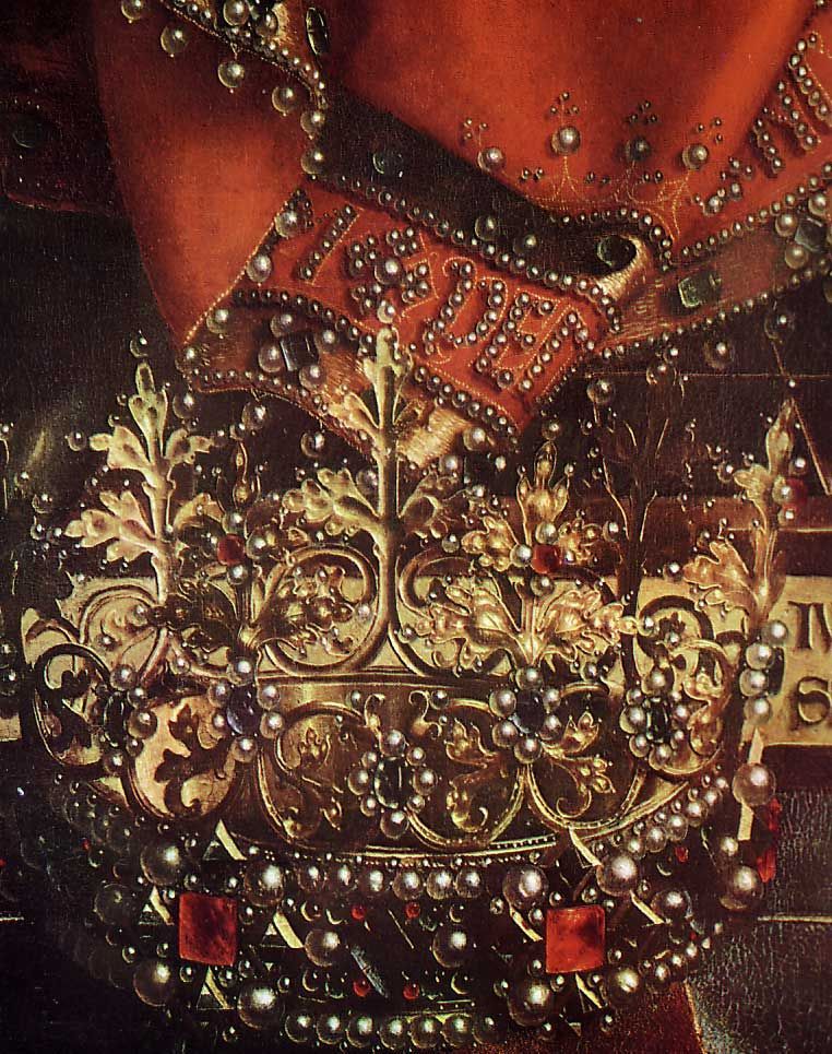 그런데 종교적인 이미지와 함께 관람자의 시선을 사로잡는 것은 천상의 인물들의 화려한 의상과 보석들이다.[그림5] 반짝이는 구슬로 수놓아진 옷과 금박으로 번쩍이는 천사들의 옷은 이탈리아 회화에서는 볼 수 없었던 것이다.