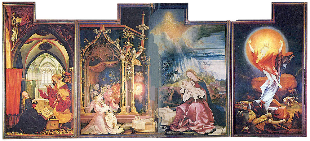 보쉬가 환상으로 섬뜩한 공포를 안겨주었다면 마티아스 그뤼네발트는 생생하고 사실적인 표현으로 인간의 마음을 자극했다. 그의 <이젠하임 제단화>는 고통과 영광의 극단을 보여주며 아직 종교의 세기가 끝나지 않았음을 확인시켜 주었다.