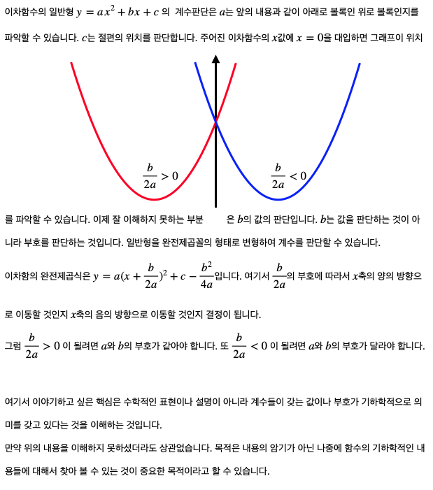 학생들을 가르칠 때 학생들이 함수에서 제일 이해를 못하던 부분 중 하나가 함수의 계수값과 함수값을 이용한 그래프의 위치를 파악하는 부분입니다.