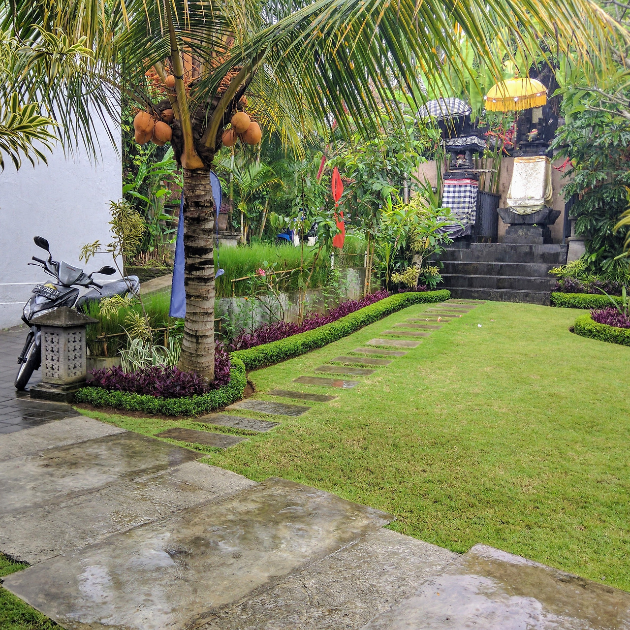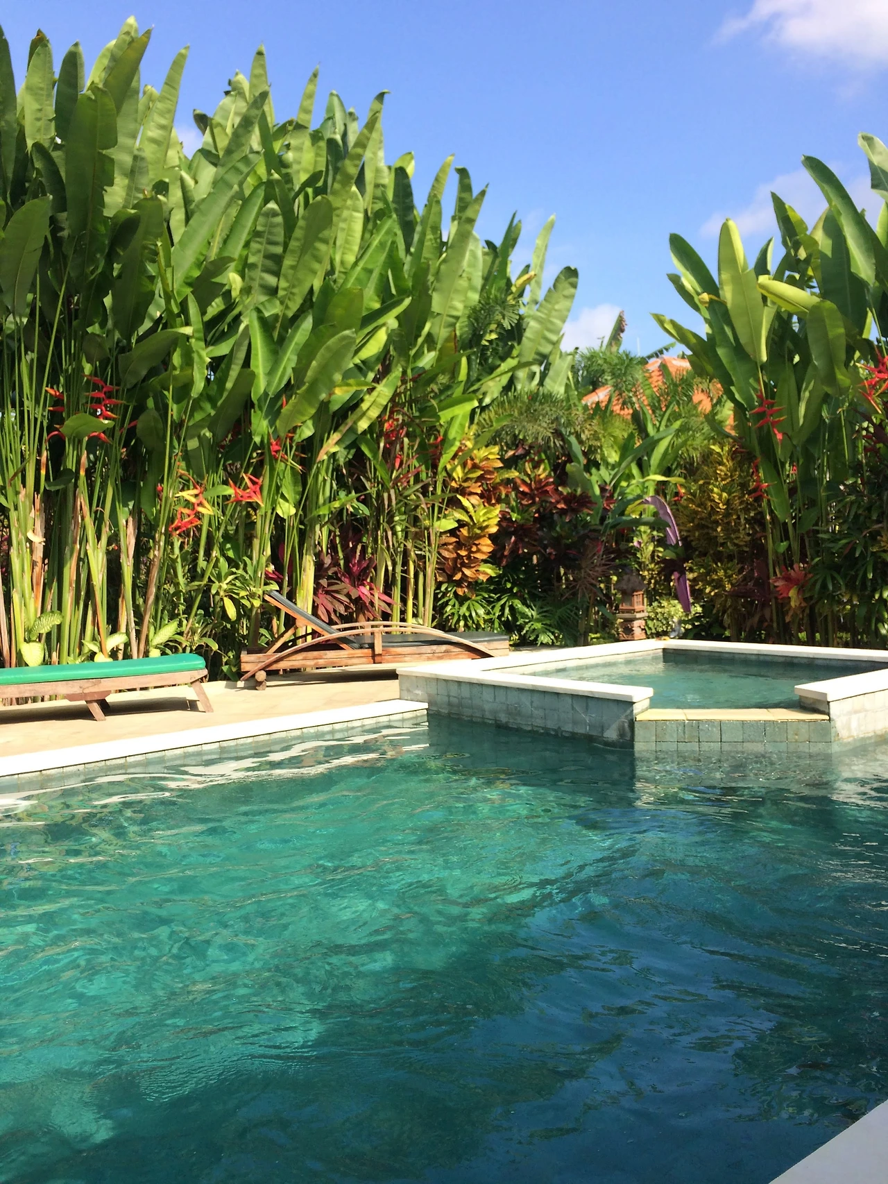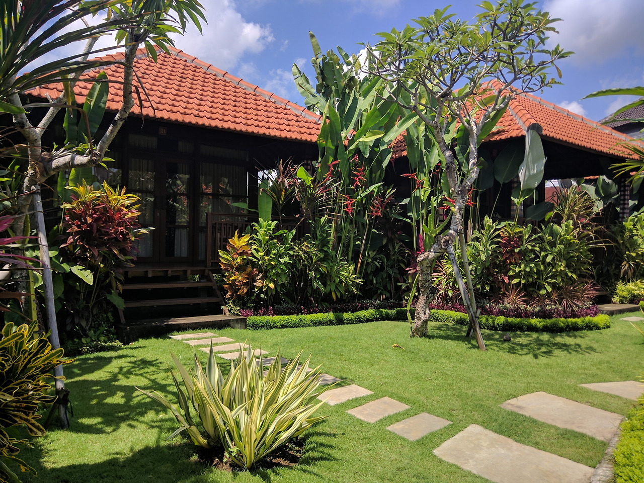 벌써부터 신이 난 신랑의 엉덩이가 들썩였다. 아름다운 열대 식물들 사이로 나란히 마주하고 앉은 오두막에는 반쯤 야외인 욕실 겸 화장실이 붙어 있었다. 입구에 놓인 테이블 하나, 구석에 있는 작은 수영장, 미고랭과 나시고랭이 조식 메뉴의 전부인 곳. 화려하진 않지만 발리만의 느낌이 곳곳에 묻어나는 오두막이 나도 제법 마음에 들었다.
