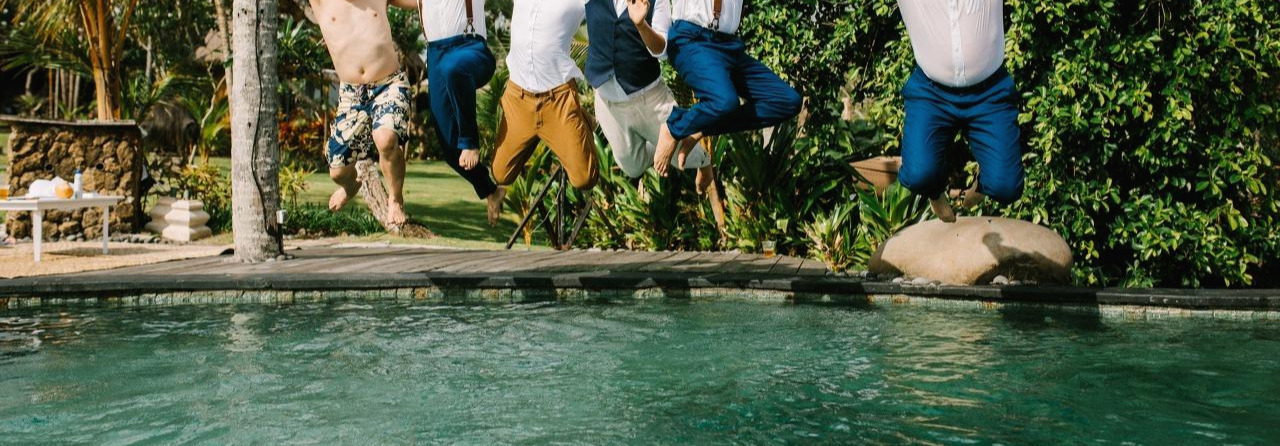 결혼식 사진을 찍고 돌아온 커플을 본 하객들이 큰 소리로 외쳤다. 웨딩드레스를 입은 S가 주저 없이 수영장 끝자락에 몸을 담그자 P와 들러리들이 이에 응답하듯 준비자세를 갖췄다. One, two, three, jump! 예복을 입은 이들이 풍덩 물에 뛰어들자 수영장에 엄청난 파동이 일었다. 마치 신나는 축제와 같은 결혼식. 오늘의 주인공들까지 합세한 pool party는 어둑한 저녁이 될 때까지 계속되었다.