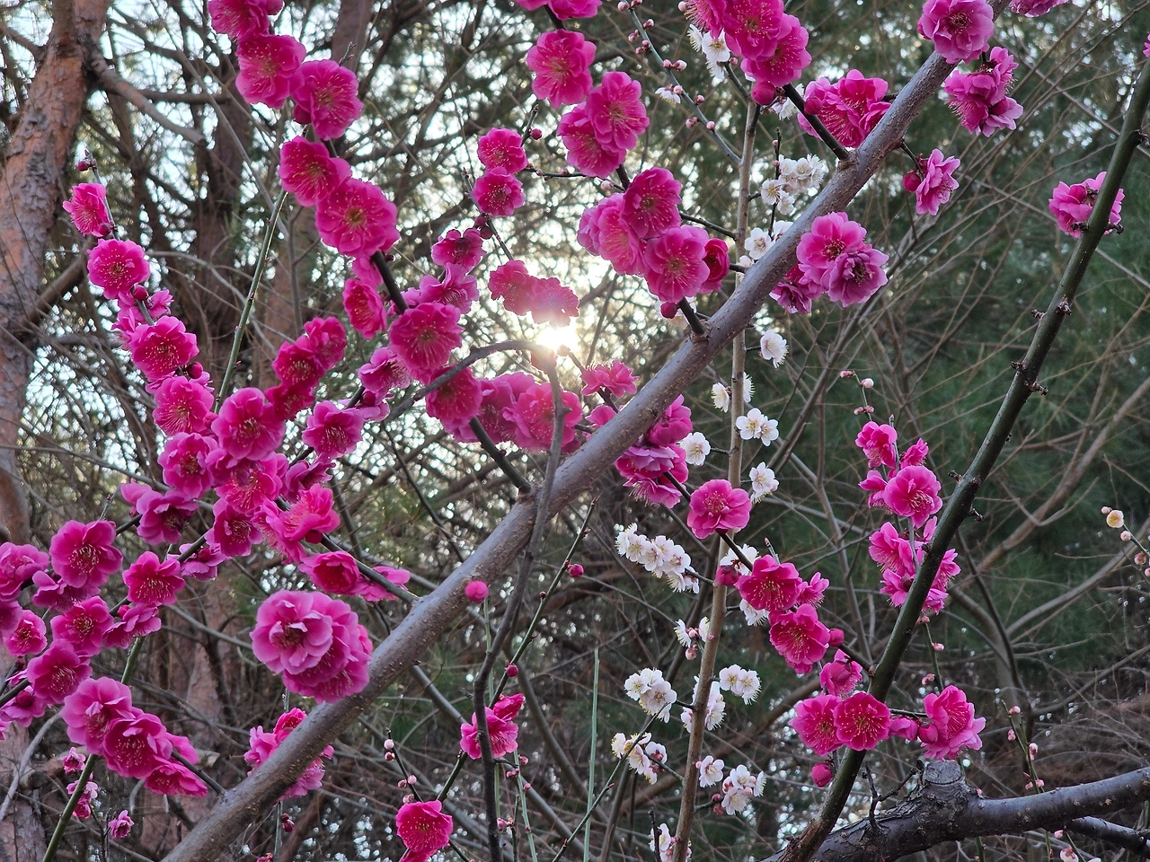 살짝 연한핑크빛 매화도 조금 보인다.