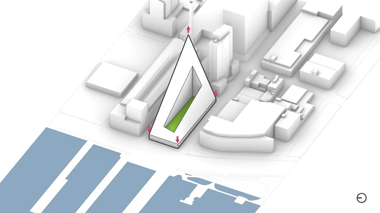 BIG은 Via를 디자인하면서 중정을 뜻하는 Courtyard와 초고층 건물을 뜻하는 Skyscraper를 하나로 합쳐 Courtscraper라는 새로운 개념을 제시하였다. 원했던 밀도의 고층 건물을 지으면서도 유럽식의 중정을 함께 가져가며 결국엔 절충안이 아닌 독특하면서도 기능적으로 새롭게 작동하는 건물이 디자인되었다. 건물에 동쪽으로 기존에 위치했던 헬레나 타워는 새로 건물이 들어섬에도 허드슨강으로의 조망권 침해를 줄일 수 있었고 Via는 더 많은 일조권과 함께 중앙 정원과 더불어 발코니를 얻을 수 있게 되었다.