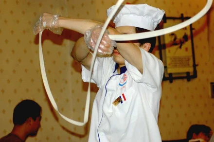 가게 앞에는 밀가루가 가득 뭍은 앞치마를 두른 아저씨가 양손에 밀가루를 가득 묻힌 채 밀가루 반죽을 거대한 도마에 탕탕 치면서 길죽하게 다시 늘이고 또다시 부여잡고 늘여가면서 밀가루 반죽 줄기가 점점 가늘어지더니 어느새 가느다란 면이 돼 가던 모습이 너무나도 신기해 한참을 서서 바라보고 있던 기억이 떠오른다.
