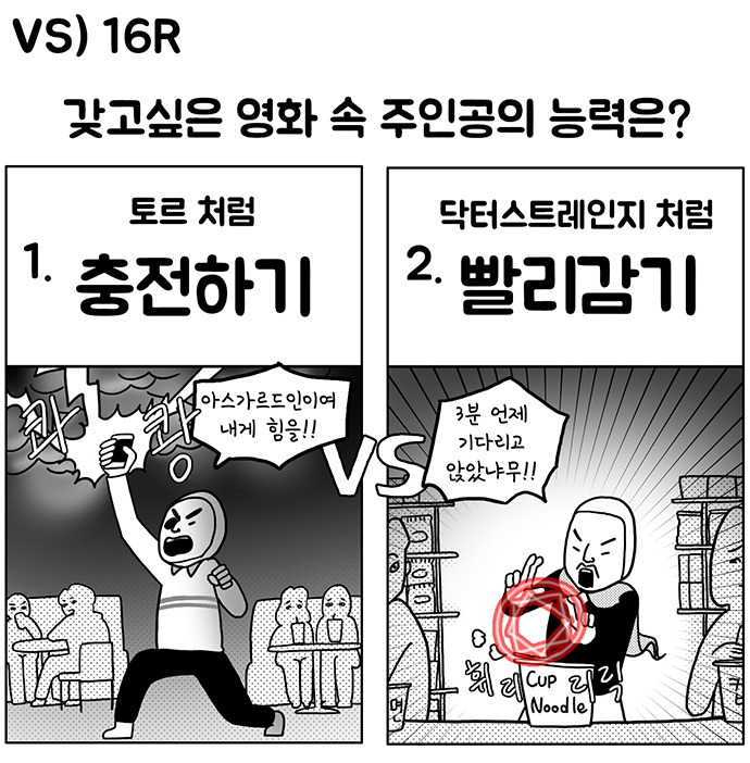 #영화 #마블 #히어로 #토르 #핸드폰충전 #컵라면먹기 #닥터스트레인지 #VS #만화 #웹툰