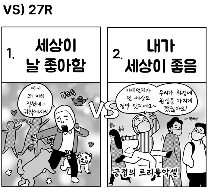 #VS #초긍정 #핵인싸 #선택 #대결 #만화 #cartoon #웹툰 #들큰철