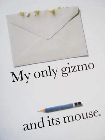 영국의 유명 그래픽 디자이너 존 고럼(John Gorham,1937~2001)은 1990년 초 ‘애플 맥(Mac)’이 디자인 산업에 도입되자 새로운 디자인 도구를 경계하면서 자신을 홍보하는 포스터를 만들어 고객과 친구들에게 보냈다. 편지봉투 밑에는 ‘나의 유일한 장비(도구)’, 연필 밑에는 ‘내 마우스’라고 쓰여 있다. 손으로 그리기 때문에 컴퓨터가 못하는 아이디어가 풍부하다는 것을 역설적으로 표현했다.