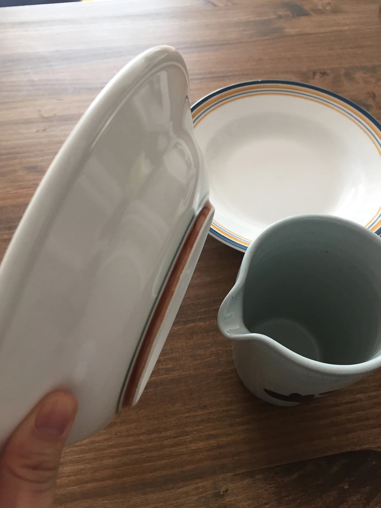 친구와 여주를 다녀왔는데, 그때 들린 플리마켓에서 그릇도 샀다. 비품인데 내가 찾던 사이즈라서 고민없이 겟! 집에 와서 자세히보니 여기저기 흠이 많았다. 계산 전에 발견했음 흥정 할 만한 구석이 많았겠지만 어쩌겠는가 살때 놀친것을.