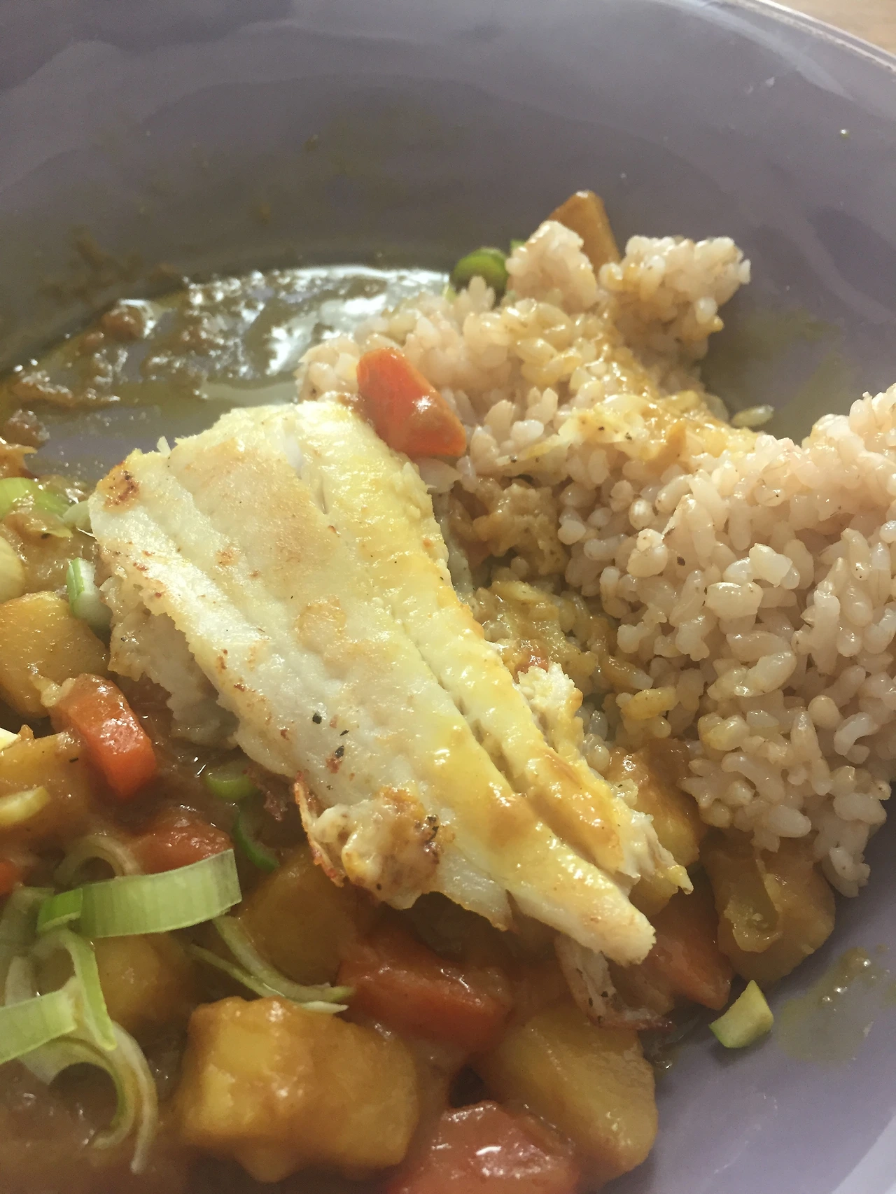 생선을 구워 카레에 올렸다. 사진 찍을새도 없이 먹기 시작한 헌. 사실 이때 나는 단식중이었다. 1인분 음식을 만들어 차려줬다. 뜨거운 김이 핸드폰 카메라 렌즈를 덮쳤다.