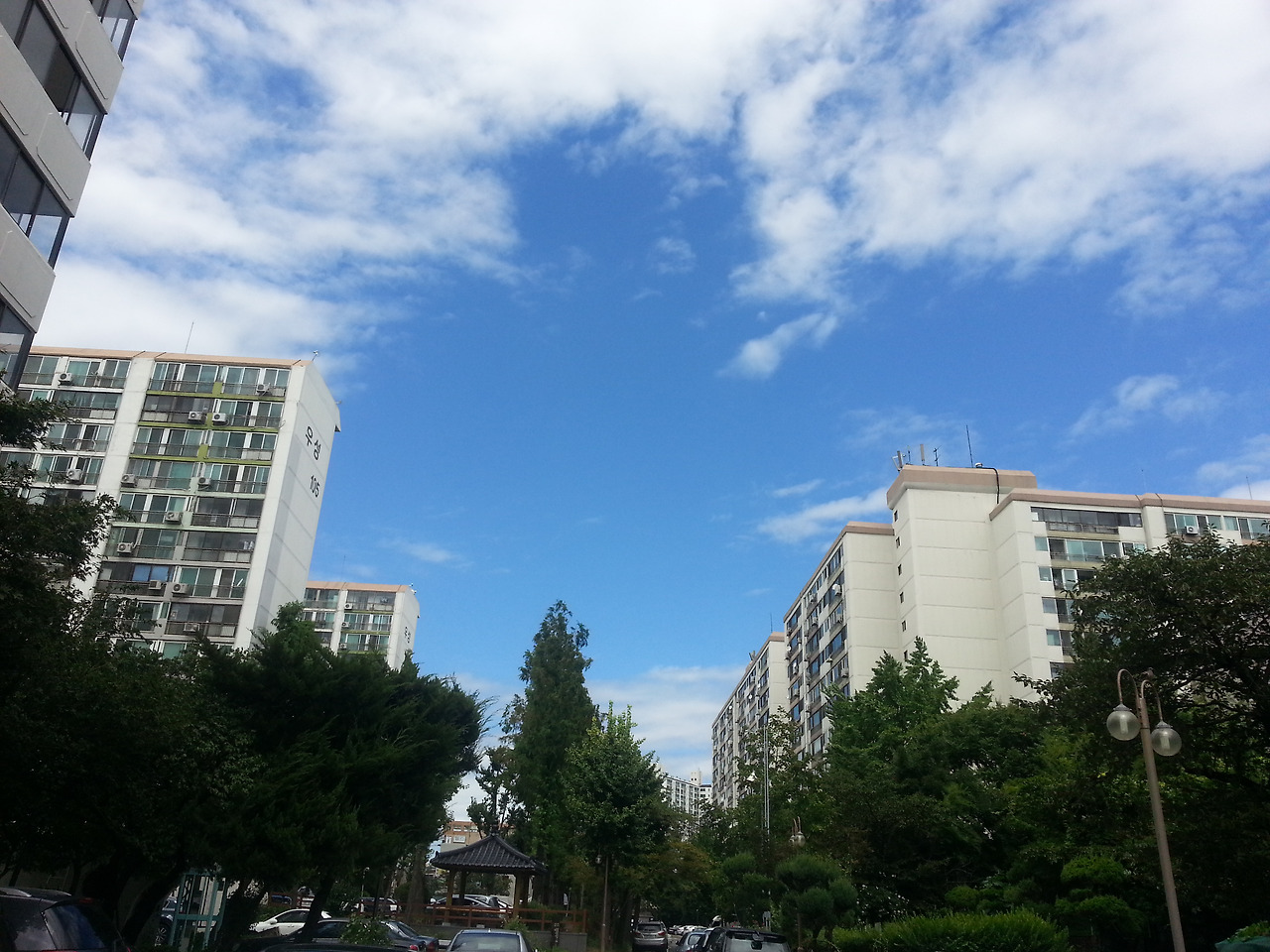 흉물스런 아파트 사이 보이는 하늘 한번 참 파랗다