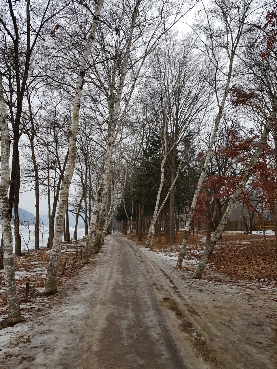 눈녹은 거리에 가로등이 이쁘다고