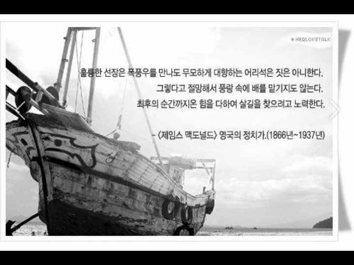 자기가 가르치고 키운 조타수에게 처음 배의 키를 맡기고 자기 자리 뒤에서 지켜보는 선장의 입술은 항해가 끝나면 파랗게 멍이 들어 있는데 그 이유는 불안하지만 뒤에서 입술을 깨물며 지켜 봐주었기 때문 이라고 합니다