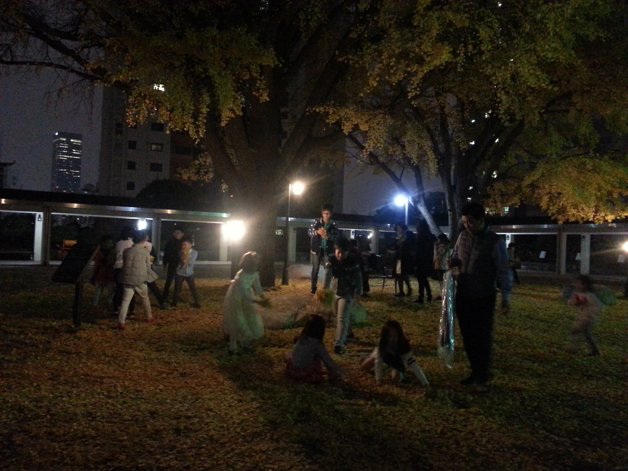 눈대신 은행 잎이 가로등 불 빛과 어울려