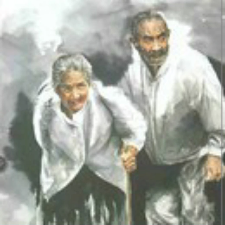 휠체어를 미는 백발의 아들과 머리조차 다 빠져가는 손 바닥 만해진 노모가 있는 그림입니다