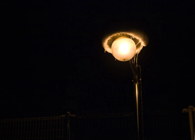 홀로 멋부린 노란 가로등 스카프 두른 구름 한조각