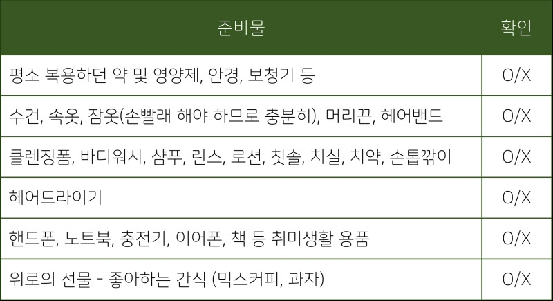 이제는 확실시 나가지 않는게 막내와 집사람을 위하는 일이라 준비물을 하나씩 적어 부탁합니다