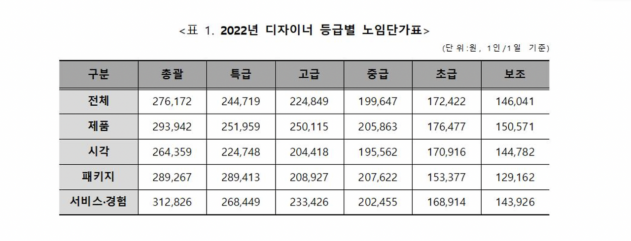 디자인대가 기준표가 있는데 참고도 해보세요.