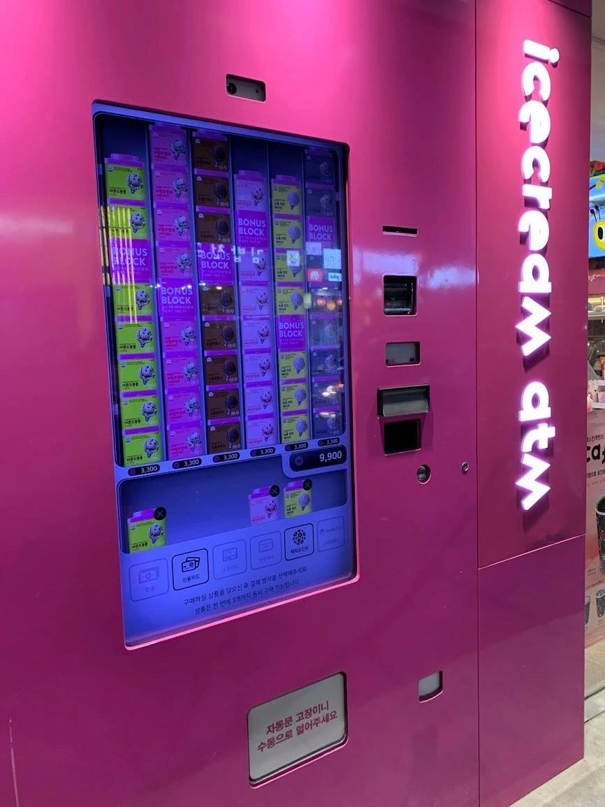 사진#3. 아이스크림 atm이라고 이름 붙여진 자판기입니다. 특이하게도 이 자판기는 아이스크린 가게의 외부에 설치되어 있는데요. 고객은 가게에 들어가서 점원에게 주문하거나 아니면 이 기기를 직접 이용해서 주문하는 방식을 선택할 수 있습니다. 앞서 이야기한 구색의 확장과는 다른 성격의 자판기인 것이죠. 한동안 지켜보았는데 이 기기를 이용하는 사람은 보질 못했습니다. 가게에 손님이 드나드는 것과는 대조적이었죠. 이는 고객의 어떤 심리 상태를 의미하는 것일까요?