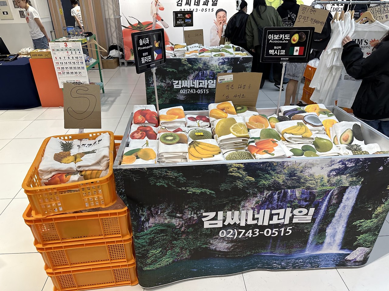 <사진#1> 최근 한국에서 인기를 끌고 있는 과일가게 콘셉트의 의류 판매 매장입니다. MZ 세대를 중심으로 불티나게 팔리고 있다는 데요. 과일이 프린트된 티셔츠를 과일가게의 경험을 제공하며 팔고 있습니다. 사람들은 늘 가치에 지갑을 엽니다.
