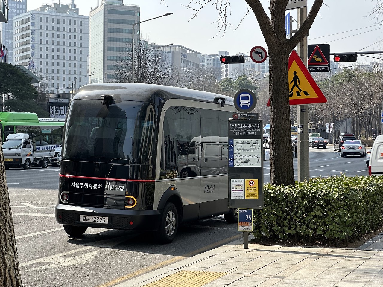 <사진#2> 서울시에 시범서비스하고 있는 무인 자율주행 버스의 모습입니다. 무인으로 운행된다는 신기함에 눈길이 가긴 합니다만, 대중교통을 이용하는 이용객에게 어떤 추가 가치를 제공할 수 있을까에 대해서는 쉽게 답이 떠오르질 않네요. 여러분은 어떻게 생각하시나요?