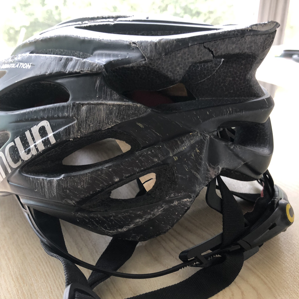 다음날 아침 아버지가 대구에서 곡성으로 오셔서 함께 병원에 갔다. 공중에 떴다가 전신을 땅에 박았기에 머리 CT부터 어깨, 가슴, 복부, 다리, 발목까지 거의 전신 X-ray를 촬영했다. 검사 결과 다행히 뇌에 출혈이 없고 뼈에도 금이나 부서진 곳이 없다고 했다. 자전거를 탈 때 평균 30~33km/h가 나온다. 내리막이 있어서 사고가 나기 직전 속도는 체감상 35km/h정도였다. 그 속도 그대로 순간적으로 공중에 떠서 땅에 박았는데 화상과 찰과상이 뿐이라니. 정말, 너무나, 소름 끼치도록 운이 좋았다. 자칫 조금만 잘못되어도 큰 사고로 이어질 뻔했다. 핼맷이 부서질 정도로 충격이 컸기에 조금만 각도가 틀어졌더라면 목이나 척추가 손상되어 사지가 마비될 수도, 자전거가 공중에서 배나 가슴 위에 떨어졌으면 뼈가 부서졌을 수도, 특히 클릿슈즈 (자전거와 다리를 고정시켜주는 특수신발)를 신고 있었는데 벗겨지지 않았더라면 발목은 물론 하반신이 뒤틀려 오랜 기간 병원신세를 질뻔했다. (지금 적는 순간 다시 생각해도 끔찍하고 아찔하다) 돌아보면 당시의 느낌이 딱 이거였다.