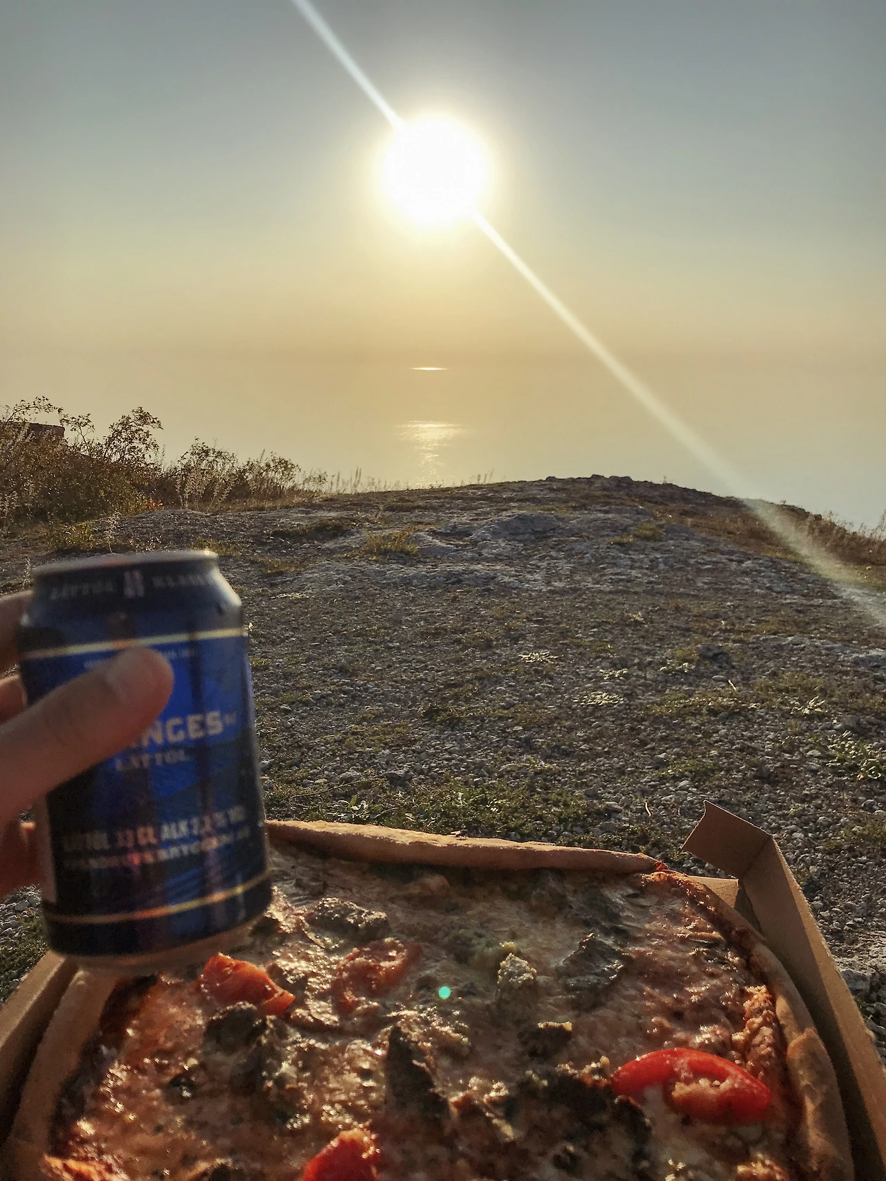 특히 바다의 물 색깔이 너무 아름다웠는데, 그 위에 태양빛이 비쳐서 일렁이는 그 모습은 ‘황홀’에 가까운 예술이었다. 게다가 저녁에는 바닷가 근처 깎아 자른듯한 절벽 위에서, 맛있는 피자랑 맥주를 마시면서 일몰을 볼 수 있는 곳인데, 더 이상의 설명이 필요할까.