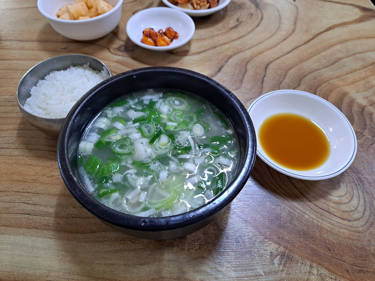 밥을 말아먹다 보니 깔끔하지만 약간은 심심한 국물이 아쉬웠는데, 젓갈향이 가득한 김치나 시원한 깍두기, 양념한 마늘과 먹으니 궁합이 아주 좋았다.