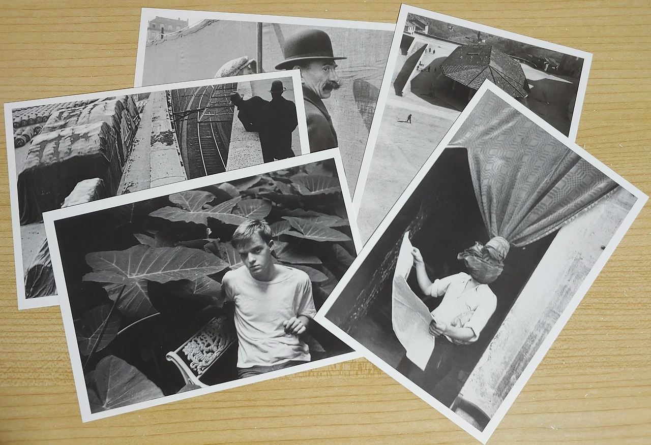 맨 앞장은 대충 예상하고 있었다. 종이로 된 포장지라 꾹 누르면 맨 겉면의 엽서가 비쳐 보였기 때문이다. 제목은 모르지만 무난한 사진이었다. 신문을 읽는 사람의 머리를 묶인 커튼이 가리고 있는 사진인데 특이했지만 이 사진을 전시실에서 본 기억이 없었다. 자주 머물렀던 구역이 아닌 이상 모든 작품을 기억하지는 못하기 때문에 확신할 수는 없다. 내가 가볍게 훑고 넘어갔던 것인가 되짚어보며 다음 장으로 넘겼다.