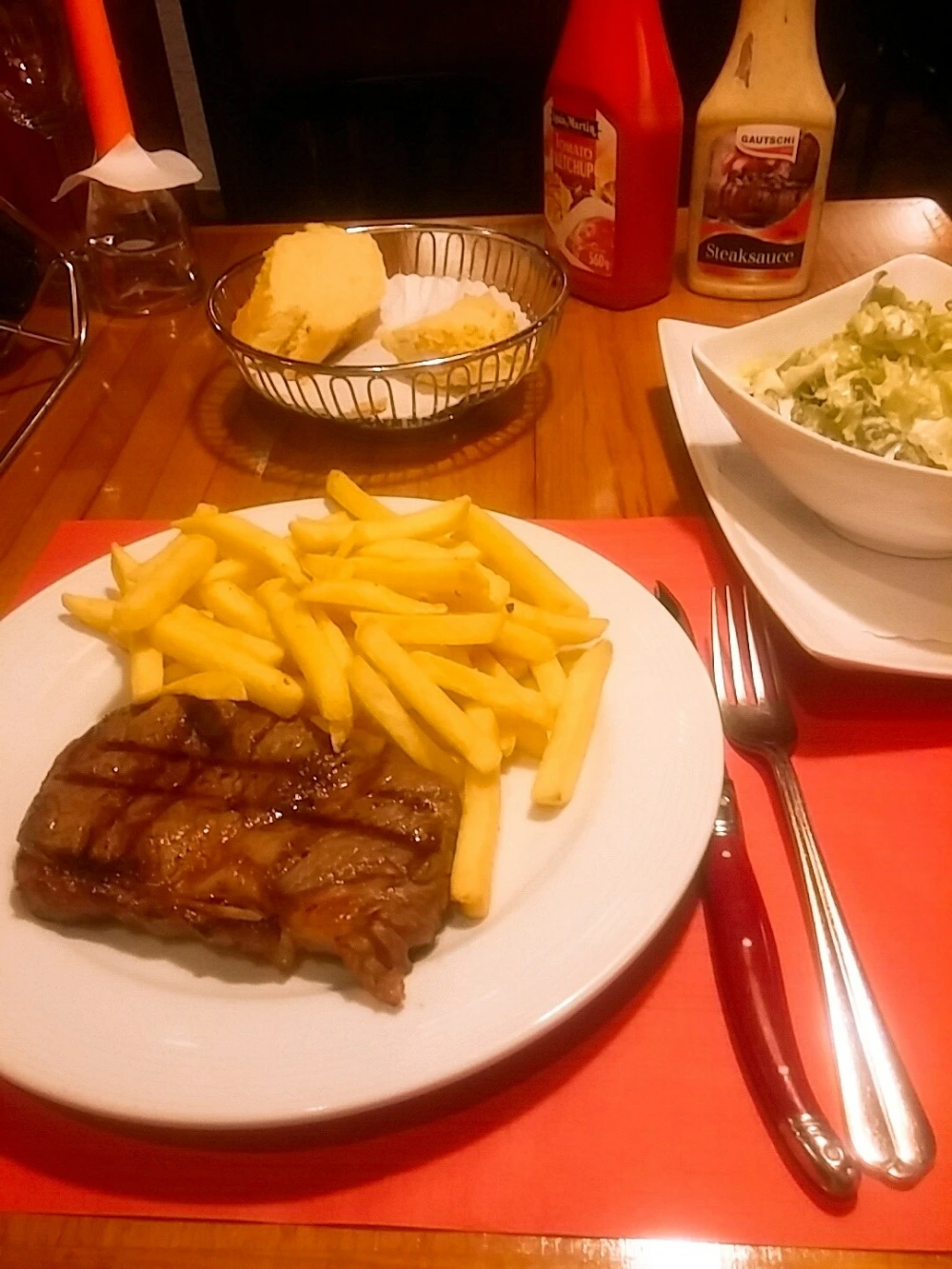 스위스의 비싼 물가치고는 저렴한 편이었는데 식전빵과 샐러드, 감자튀김과 스테이크까지 맛있어 기쁘게 먹고 나왔다.