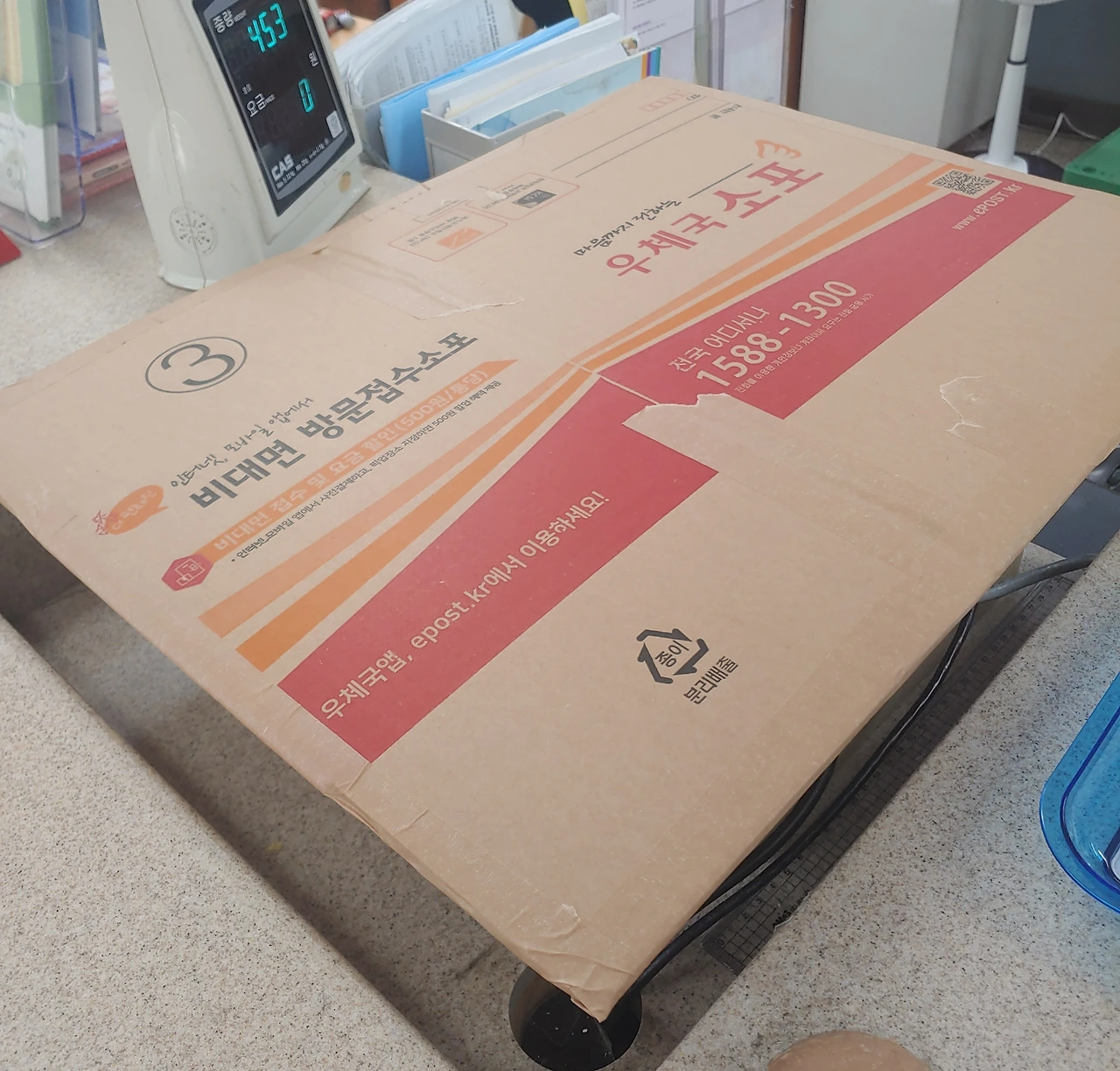 각설하고, 이때도 일로 정신없던 때라 공고가 올라오자마자 아침 일찍 우체국에 뛰어갔다. 미술작품을 택배로 보내본 적이 없어서 어떻게 보내야 하는지 고민했는데 아래 사진처럼 택배박스를 납작하게 만들어서 보내면 된다고 한다. 원형 통에 담아서 보내기도 하는 것 같다.