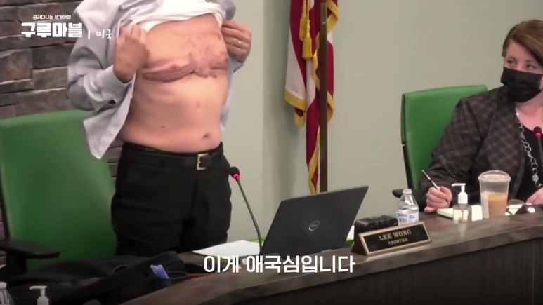 "너는 미국인처럼 생기지 않았네? 애국심이 없겠군."