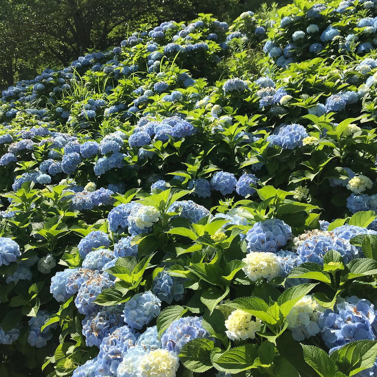 길은 다시 내리막길로 이어졌다. 수국은 그 길을 따라 계속 이어졌다. 꽃무리 사이에 사람 하나가 들어갈 수 있는 틈이 있어 저마다 비집고 들어가 포즈를 취하고 사진을 찍었다. 그 틈이 의도된 것인지 아니면 사람 욕심이 짓이겨 생긴 것인지는 모르겠지만 어쩐지 자연스러워 보기가 나쁘지는 않았다.