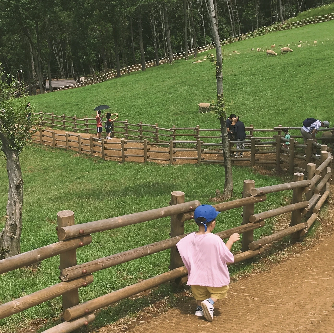 꿋꿋이 겨우겨우 올라 놀이터에 도착했다. 바닥이 푹신했고, 밟으면 거의 3센티 정도는 들어갔다가 나오는 기분이었다. 땀을 뻘뻘 흘리며 지상이는 뛰었고 초등학생이나 되어야 즐길 수 있는 미끄럼틀과 구름다리는 “아빠. 아빠. 나도 나도”라며 애원해보는 수밖에 없었다. 다행히 안 된다는 나의 말에 빠른 포기를 했고, 최종 목적지인 양과 토끼가 있는 동산으로 올랐다.