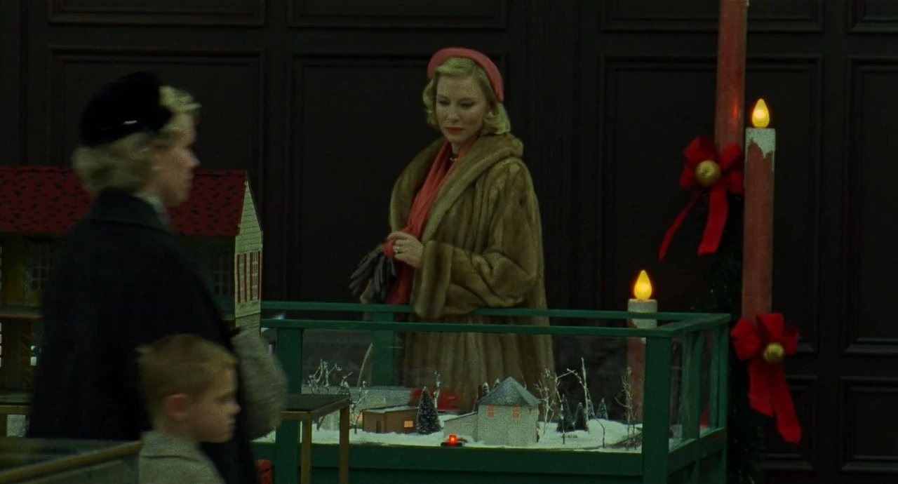 그러던 어느 날 테레즈는 캐롤을 만난다. 만남은 순간적으로 핑크빛으로 물들어 일상 곳곳에 번진다. 캐롤은 손님이었고, 테레즈는 친절한 점원이었다. 손님과 고객. 성사된 거래로 주고받는 상품 뒤로 둘은 묘한 교감을 가진다. 그 과정에서 캐롤이 두고 간 장갑은 테레즈에게 속마음을 전달할 좋은 기회가 되었다.