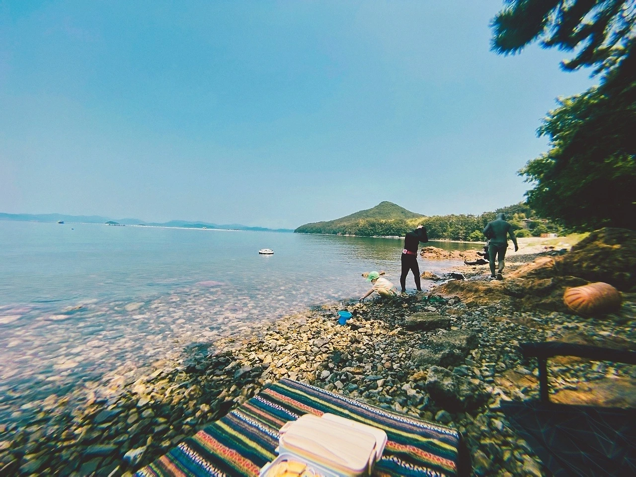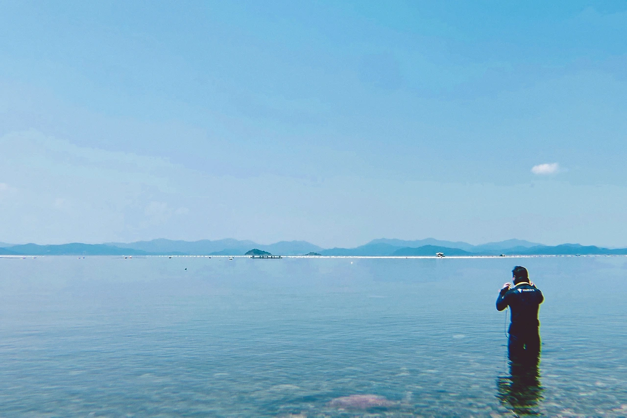 열심히 게를 좇기를 한 시간쯤이나 지났을까 갑자기 많은 사람들이 우수수 몰려왔다. 하나같이 몸에 쫙 달라붙는 슈트를 입었고, 엄청 큰 오리발을 찼다. 나는 물질이나 하는가 궁금해 “여기서 뭐 잡으시는 거예요?”라고 물으니, 그중 한 분이 “수영 연습하러 왔습니다.”라고 답했다. 수영 연습이라고 하기에는 자유형, 배형, 접형 같은 포즈가 없었고, 고개를 바다 밑으로 숙인 채 동동 떠다니며 잠수를 했기에 스쿠버다이빙이라고 해야 하는 거 아닐까 의문이 들었다. 어쨌든 잠수를 수영이라고 부르는 사람들이 가득 모였다. “이곳에는 사람이 별로 없어서 왔는데 사람이 많네.”라고 하던 어느 아저씨의 말대로 삼삼오오 짝을 지은 다이버팀이 세 무리나 모인 것은 참으로 신기한 우연이었다.