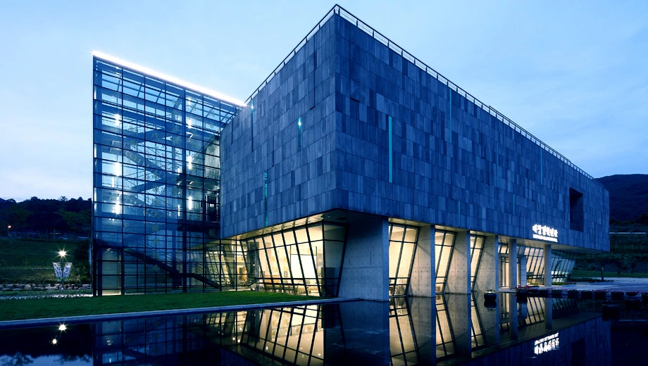 한국 대표 사찰인 해인사와 그 안에 팔만대장경이 있다는 것 정도가 우리 나라 대부분 사람들의 합천에 대한 사전 정보가 아닐까. 팔만대장경은 고려 시대에 몽고 침입을 불심으로 이겨내자는 의도였다. 역사적으로 우리 나라의 뛰어난 목판 인쇄술을 증명한다는 가치로 자긍심을 심어주기에 열중이다. 반면에 환란을 종교의 힘으로 극복하기만을 바랬던 국가의 무능을 방증할 것이다. 어쨌든 기념비적인 의미를 품고 탄생한 대장경 테마파크는 아주 큰 공원처럼 꾸려진 부지에 세 개 동으로 구성된 곳이었다.